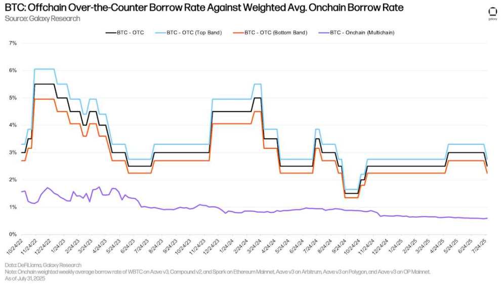 4月初旬、市場が解放記念日の安値から力強く反発したため、OTC BTC金利はわずかに上昇しました。しかし、7月下旬に市場が冷え込むと、金利は第2四半期初めの2.25%水準まで低下しました。