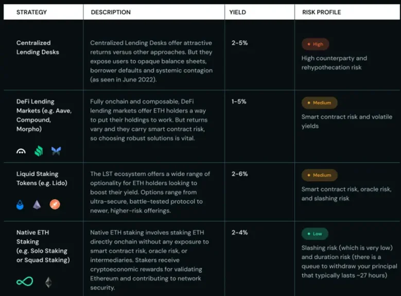 イーサリアム保有者が利用できるあらゆる収益戦略の中で、ステーキングは借り手、取引相手、信用リスクを生み出さない唯一の選択肢です。