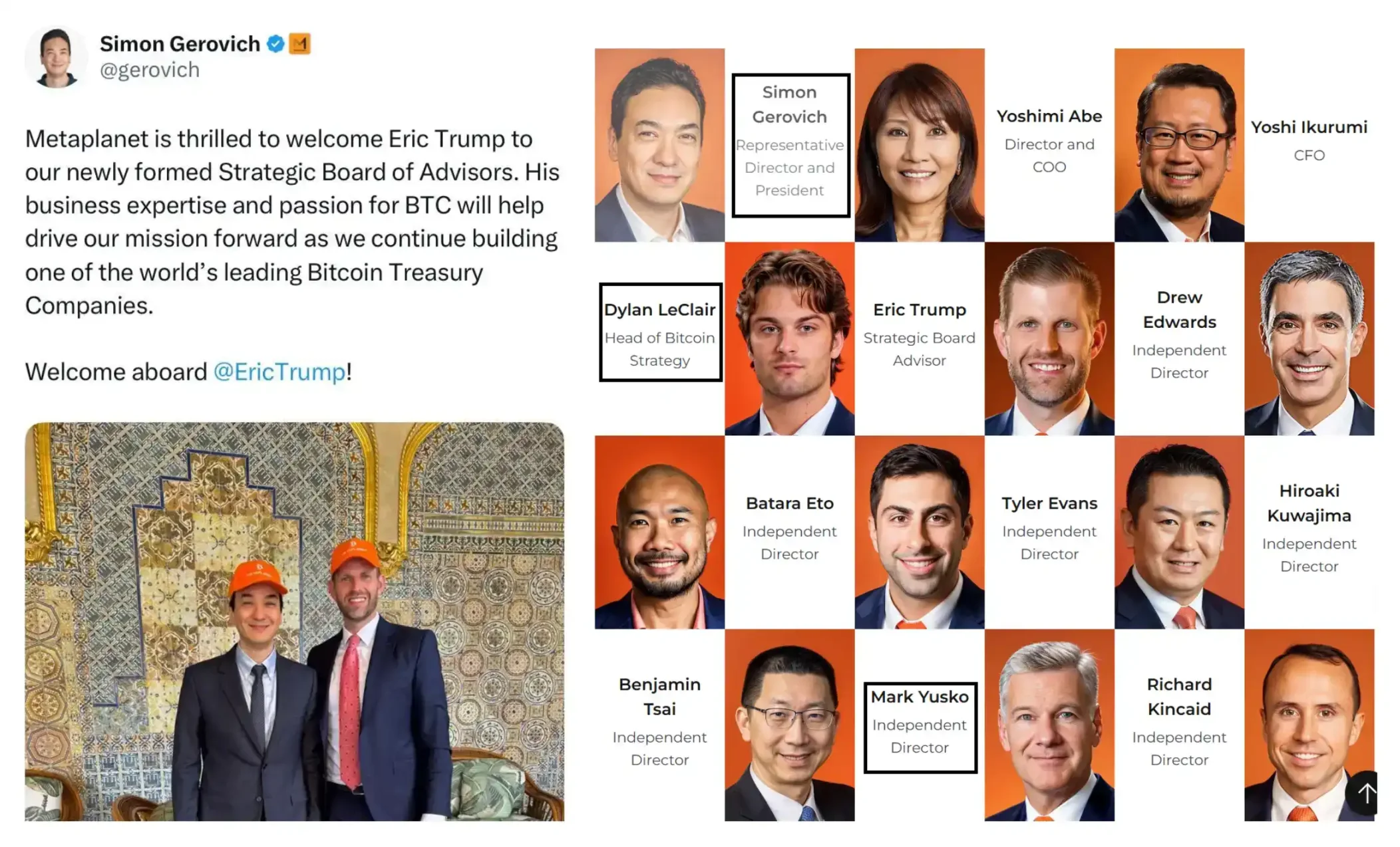 左: Eric と Simon の写真、右: Metaplanet のコアメンバー。画像出典: X、Metaplanet
