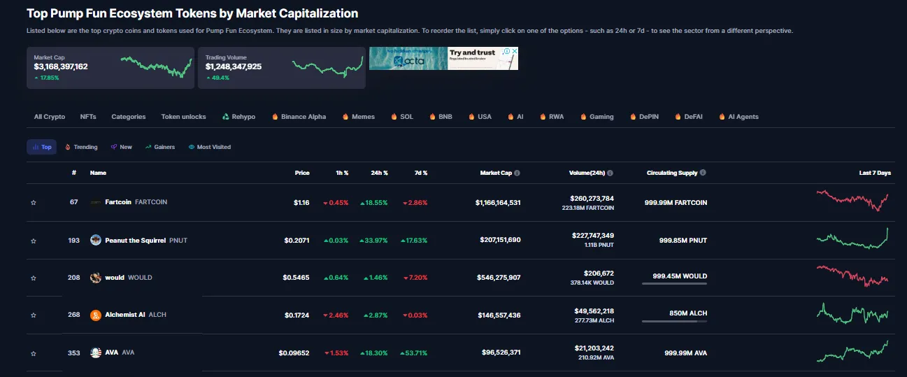 ビットコインがイーサリアムを凌駕して注目を集める一方で、ミームコインも同様の動きを見せている。残念ながら、これらのミームコインはイーサリアムチェーン上ではローンチされませんでした。 2025年に最も成功するミームコインの1つである、時価総額10億ドルを超えるFartcoinがSolanaチェーン上でローンチされました。人気のミームコイン発行プラットフォーム PumpFun も Solana に登場しています。気づいていないかもしれませんが、2024 年後半から 2025 年にかけて作成された最も人気のある memeToken のほとんどは PumpFun からのものでした。