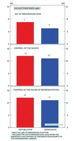 選挙の見通し: 経済が不況に陥らなければ、赤陣営が2028年の大統領選挙で勝利する可能性が高い。