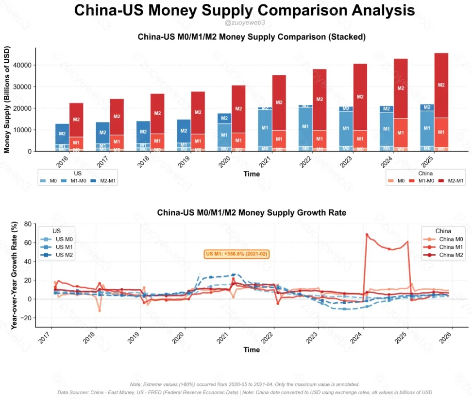画像キャプション:中国と米国のM0/M1/M2の比較。画像出典:@zuoyeweb3