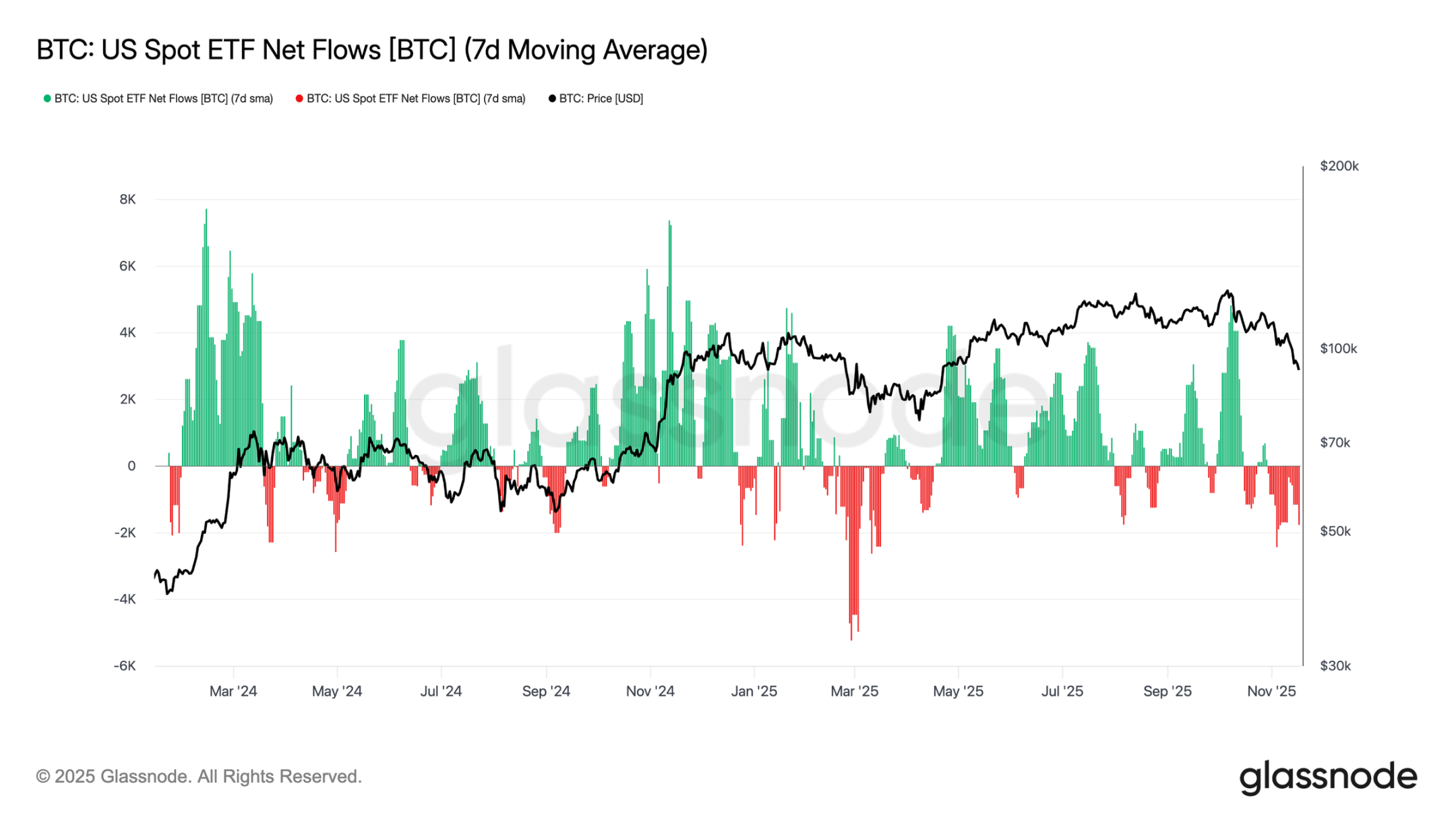 米国スポットETFへの継続的な資金流入は、7日移動平均が数週間にわたってマイナスで推移していることから、明確な需要不足を反映しています。この継続的な資金流出は、伝統的な金融資産配分者が、現在の下落局面においてエクスポージャーの拡大に消極的であることを示唆しており、これは以前の市場上昇を支えた力強い資金流入とは対照的です。現在の弱含みは、裁量的な資産配分意欲が大幅に冷え込んでいることを示唆しており、市場最大の限界的購入者グループの一つによる新規購入が見られないことも、需要が抑制されているという全体的な環境をさらに強固なものにしています。