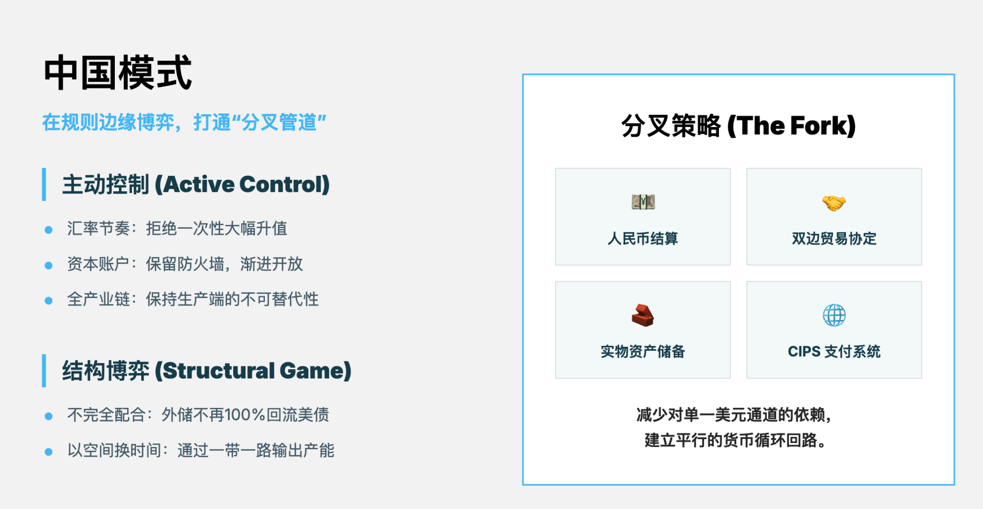 しかし、ガバナンスへの信頼が低下し、ルールの制約が弱まり、金融商品が頻繁に武器化されると、この構造的な不均衡は再評価され始める。貿易黒字と貿易赤字はもはや単なるマクロ経済現象ではなく、それ自体がリスクエクスポージャーとなる。こうした背景から、同じ黒字国である日本と中国は、徐々に異なる道を歩んできた。